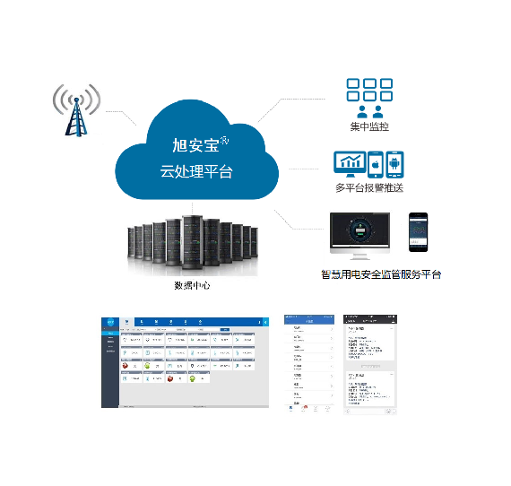 旭安宝-智慧式用电安全隐患监管系统智慧式用电安全隐患监管服务系统是通过物联网技术对电气引发火灾的主要因素(故障电弧、导线温度、电压、电流和漏电流等)进行不间断的数据跟踪与统计分析,实时发现电气线路和用电设备存在的安全隐患(如故障电弧、线缆温度异常、过载、过压、欠压及漏电等),经系统分析及时向安全管理人员发送预警信息,提醒企业治理隐患,达到消除潜在的电气火灾危险,实现“防患于未然”的目的。该系统能有效解决用电单位电气线路老旧、肉眼无法直观即时排查电气隐患、隐蔽工程隐患检查难等难题。